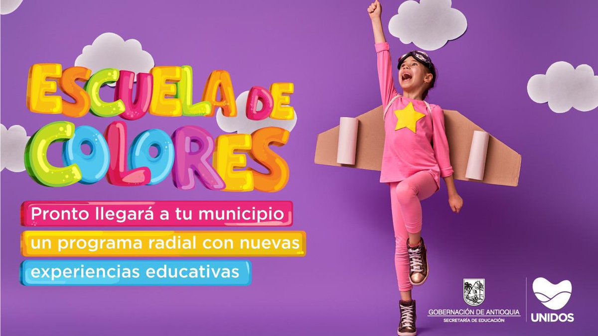 -El programa de radio educación “Escuela de Colores” llegará a los diferentes hogares antioqueños los días martes y jueves, a partir del día 23 de febrero, en el horario de 9:00 a.m. a 9:30 a.m., a través de las diferentes emisoras locales de cada municipio del departamento.