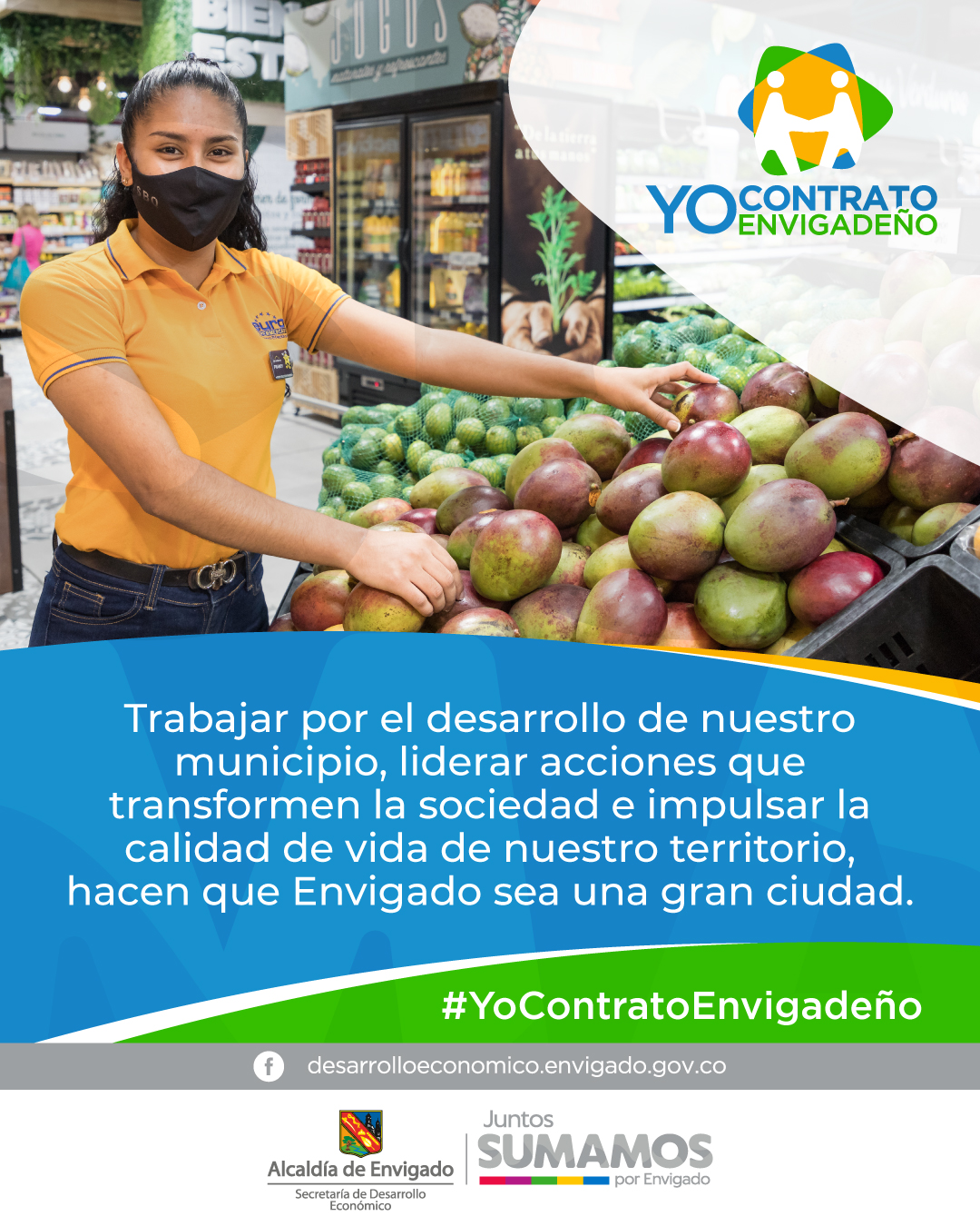 Campaña: «Yo contrato envigadeño». Trabajar por el desarrollo del municipio, liderar acciones que transformen la sociedad e impulsar la calidad de vida del territorio y del país, hacen que Envigado sea una gran ciudad.