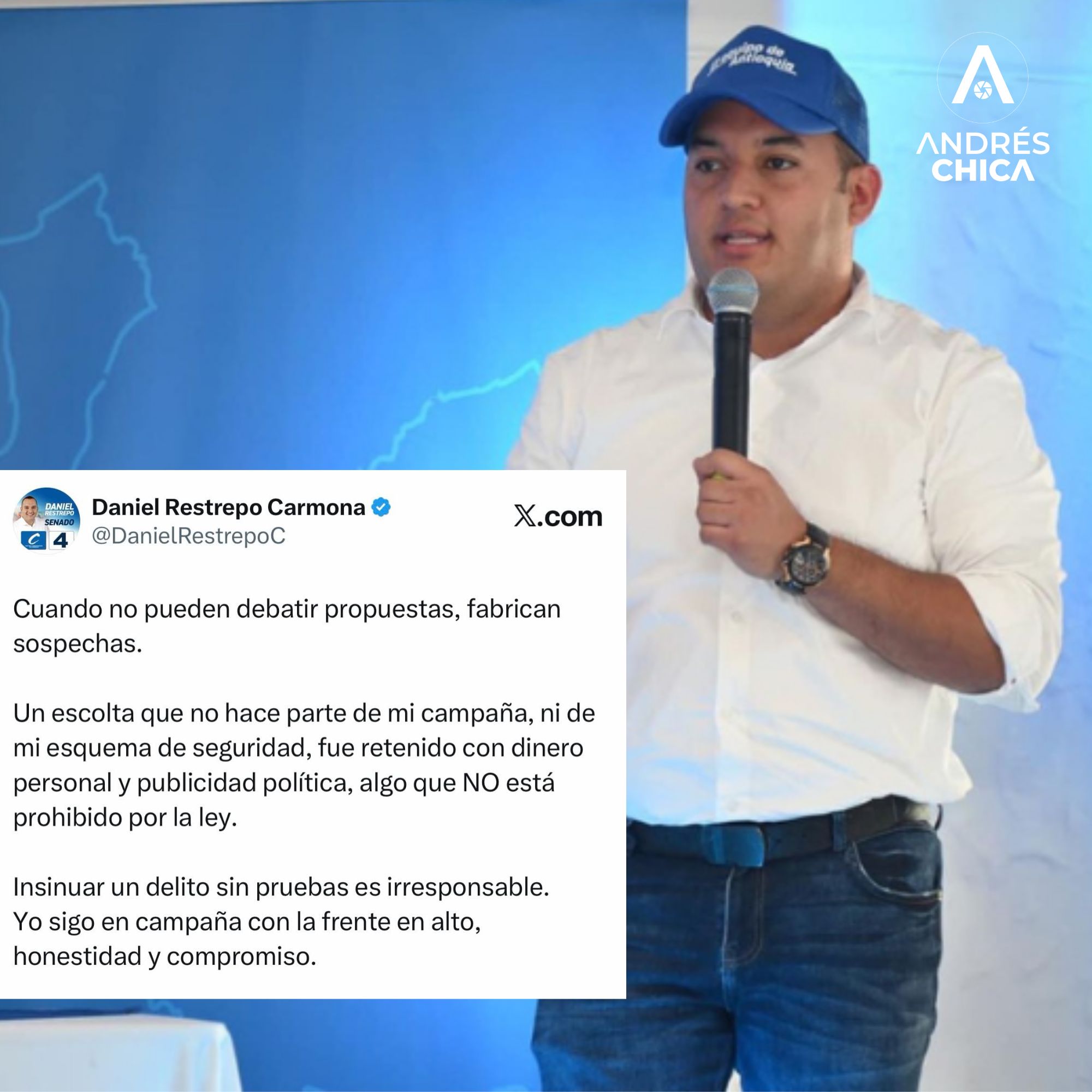 En este momento existe un proceso en curso contra una persona específica. Lo que no existe, hasta ahora, es prueba pública que vincule formalmente a la campaña de Daniel Restrepo Carmona con una práctica ilegal. La diferencia entre ambos escenarios es sustancial.