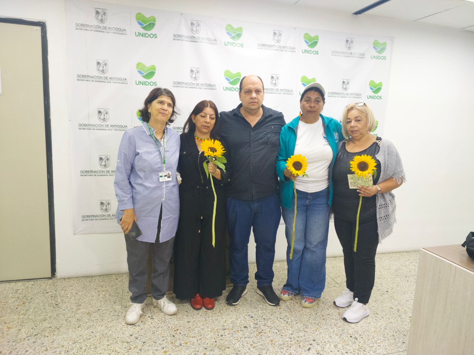 Al encuentro asistieron Luz Patricia Correa, Directora de Derechos Humanos de la Secretaría de Asuntos Institucionales, Paz y Noviolencia; Luz Helena Galeano y María Isabel Palacio, de la Mesa Departamental de Participación Efectiva de Víctimas; John Fernando Mesa, Secretario Técnico del Consejo Departamental de Paz, y Amparo Mejía, de Madres de la Candelaria.